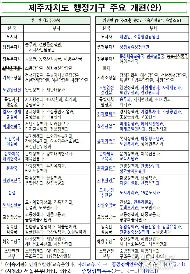[한라일보] 민선 8기 오영훈 제주도정의 조직개편안이 모습을 드러냈다.