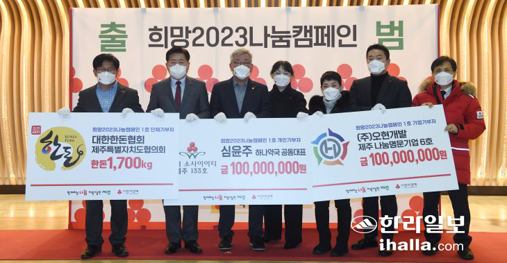 캠페인 출범과 함께 개인·단체·기업 1호 기부자가 탄생했다. 기업 1호 기부자로 (주)오현개발이 제주 나눔 명문기업 6호로 가입하며 성금 1억원을 기부했으며, 하나약국 심윤주 공동대표는 성금 1억원을 기부하며 캠페인 1호 개인 기부와 함께 제주 아너 소사이어티 133호 회원으로 가입했다. 단체 1호 기부자는 대한한돈협회 제주특별자치도협의회로 한돈 1700㎏을 기부했다.