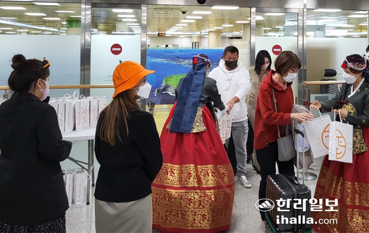 코로나19 여파로 중단됐던 제주국제공항 국제선 운항이 2년2개월여만에 재개됐다. 지난 6월 제주 무사증 입국 재개 이후 태국, 싱가포르, 오사카, 대만 등 직항 노선이 속속 열리면서 제주와 해외를 잇는 하늘길이 넓어지고 있다. 3년째 이어진 코로나19 상황 속에 내국인의 제주 여행 수요가 늘면서 올해 제주를 찾은 내국인 관광객 수는 역대 최다를 기록했다. 지난 25일 기준 1359만2694명(잠정·제주도관광협회 집계)으로, 코로나19 이전 최고 기록인 2019년(1356만4명) 수치를 넘어섰다.