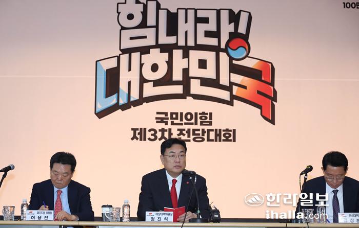 국민의힘 정진석 비상대책위원장이 13일 제주도 제주시 제주국제자유도시개발센터(JDC)에서 열린 현장비상대책위원회에서 발언하고 있다. 연합뉴스