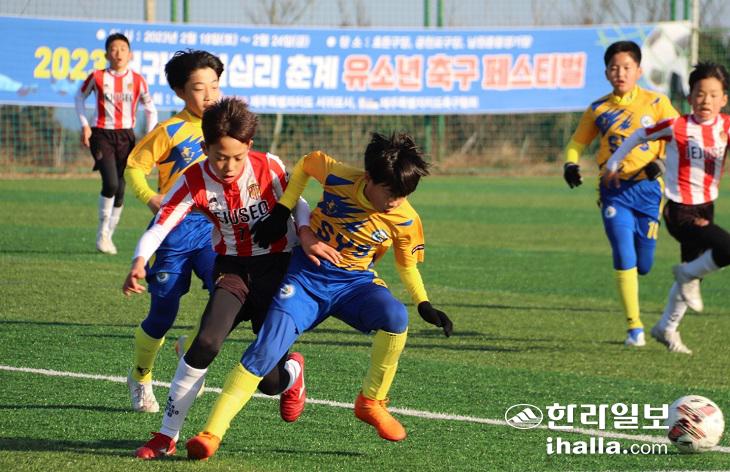 [한라일보] 2023 서귀포 칠십리 춘계 유소년축구 페스티벌에서 제주도내 팀들의 선전이 펼쳐지고 있다.