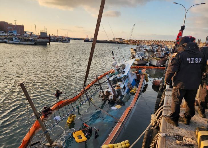 해경 도착 당시 A호는 침수돼 우현으로 완전히 기울어져 해저에 닿은 상태였으며 어선 내부에 선원은 없었다.