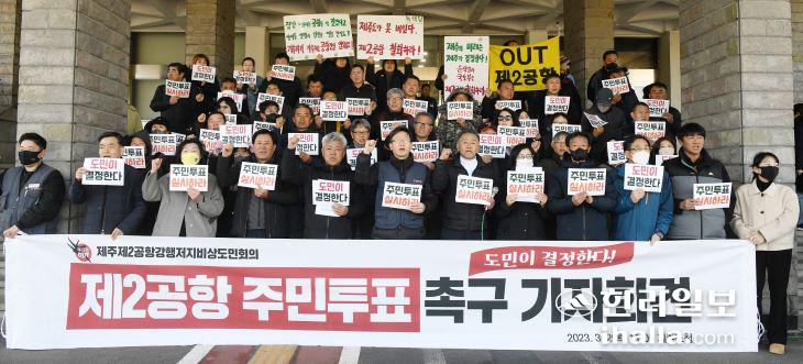 비상도민회의는 "제2공항으로 커진 도민사회의 반목과 갈등을 치유하는 길은 도민 스스로 결정하는 것뿐"이라며 "해묵은 갈등과 분열, 혼란을 끝낼 마침표가 바로 제2공항 주민투표"라고 주장했다.