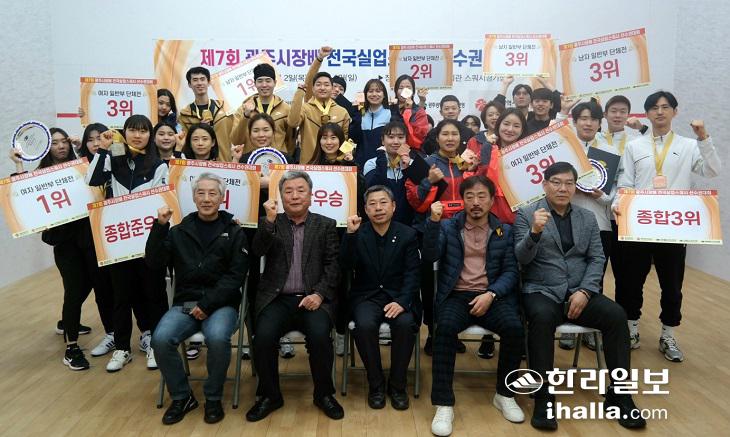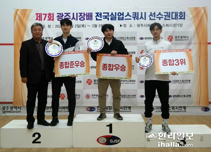 [한라일보]부산광역시체육회가 제7회 광주시장배 전국실업스쿼시 선수권대회에서 충북체육회의 대회 3연패를 저지하며 정상등극에 성공했다.