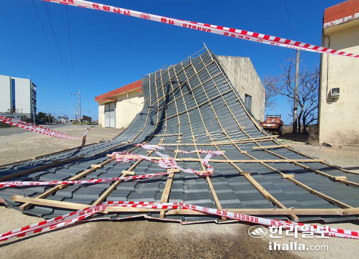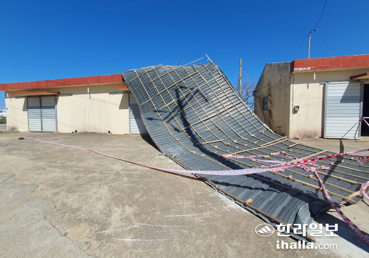 [한라일보] 지난 12일 비가 내린 뒤 제주 전역에 강한 바람이 불며 지붕이 날아가고 유리가 깨지는 등 강풍 피해가 잇따랐다.