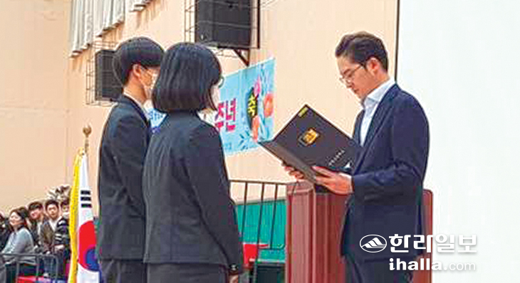 제주 향토기업인 (주)한라산(대표이사 현재웅)이 지난 2일과 9일 한림지역 장학생 지원과 인재 육성을 위해 한림공업고등학교와 한림고등학교에 각각 장학금을 전달했다. 한림공업고등학교 신입생과 학업성적 우수자 5명에게 총 200만원을, 개교 60주년을 맞이한 한림고등학교 신입생과 학업성적 우수자 2명에게 총 200만원의 장학금을 전달했다. (주)한라산은 도내 청소년 인재 육성을 위해 1996년부터 매년 한림지역 학생들을 대상으로 장학금을 전달해오고 있다.