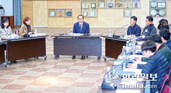 강병삼 제주시장은 13일 제주시 마을만들기 사업 관련 부서(마을활력과, 도시재생과, 해양수산과) 합동 워크숍에 참석해 다양한 의견을 공유하고 관계자들을 격려했다. 이번 워크숍은 농촌협약, 도시재생사업, 어촌 신활력 증진사업 등 마을만들기 사업이 성공적으로 추진될 수 있도록 사업 방향성과 개선 방안을 논의하기 위해 마련됐다. 강 시장은 "마을만들기 발전 방안과 성공 사례 공유 등 부서 간 협업으로 지역민이 만족할 만한 사업 성과를 창출해 달라"고 당부했다.