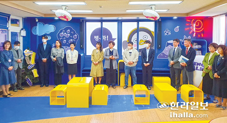 서귀포시 표선면 가마초등학교에서 지난 10일 'AI 펭톡 존' 2호 오픈식이 열렸다. AI 펭톡은 EBS 대표 캐릭터인 '펭수'를 활용한 AI 영어 말하기 시스템으로 '펭톡 존'에서는 이를 오프라인에 접목해 어린이들이 직접 체험하며 살아있는 영어를 배울 수 있는 공간으로 조성했다.