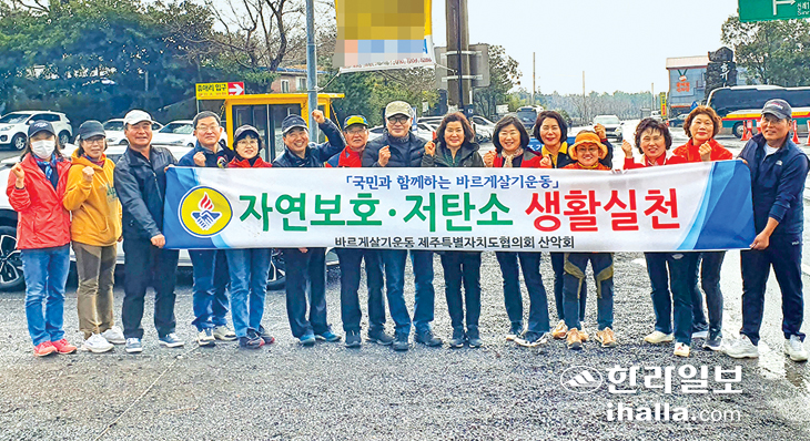 바르게살기운동제주특별자치도협의회(회장 좌중언)는 산악회(회장 정승익) 주관으로 지난 12일 서귀포시 남원읍 소재 관광지 휴애리 생활자연공원 일대에서 임원 20여명이 참여해 자연보호 및 저탄소 생활실천 캠페인을 전개했다.
