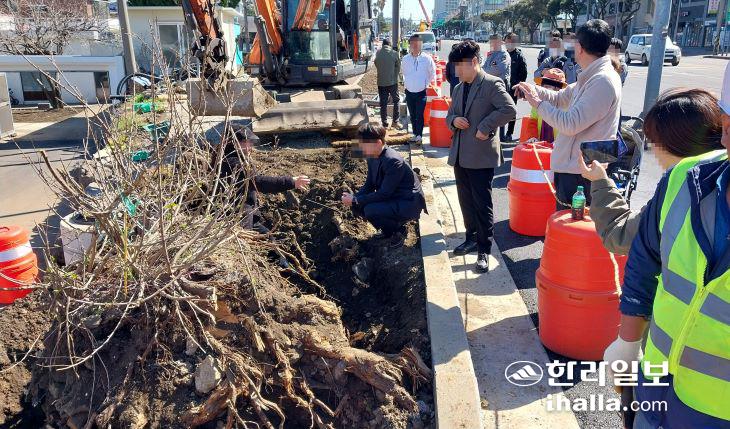 제주시 관계자는 "인도 조성과 보행공간 확보를 위해 이식을 진행할 예정이며 재개 시점은 고민하고 있다"고 말했다.