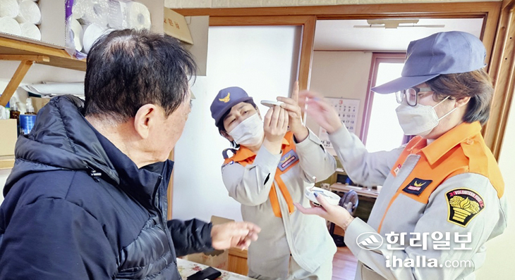 제주소방서 오라여성의용소방대(대장 홍영심)는 지난 13일 오라동 관내 주거취약가구 9개소를 대상으로 소화기·단독경보형 감지기 보급 및 사용법 교육과 전기·가스 안전관리 등 주택안전점검을 실시했다.