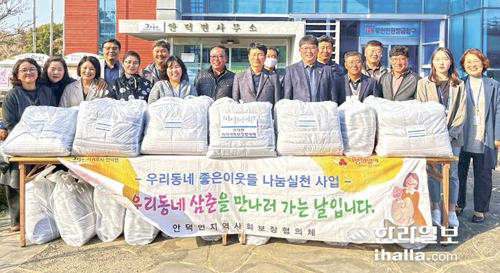 안덕면지역사회보장협의체는 지난 7일 우리동네 좋은 이웃 나눔 실천 사업을 전개해 돌봄이 필요한 이웃들에게 새봄맞이 이불 전달과 함께 안부 확인, 복지 상담을 진행했다. 이 사업은 복지사각지대에 있는 취약계층과 안덕면지역사회보장협의체 위원들이 1대 1 결연을 맺어 지속적으로 가구를 방문해 돌봄 서비스를 제공하는 사업이다.