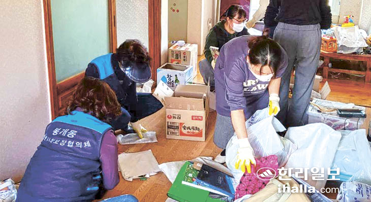 제주시 봉개동지역사회보장협의체(공동위원장 김문규, 김정득)는 지난 15일 순복음종합사회복지관과 협업해 주거 환경 개선이 필요한 가구를 대상으로 '행복한 내 둥지 꾸며주기 사업'을 진행했다. 또한 관내 독거노인, 장년층 1인 가구를 방문해 식재료를 지원했다.