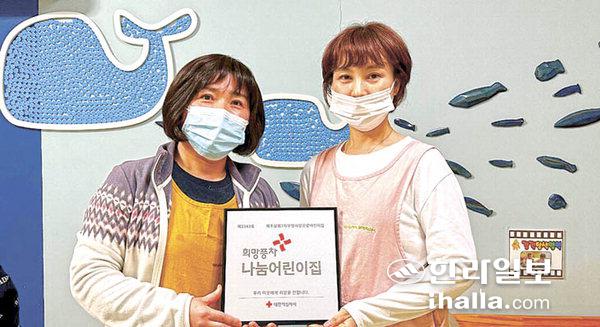 부영그룹이 지원하는 제주삼화7차 부영 사랑으로 어린이집이 대한적십자사제주특별자치도지사로부터 적십자 희망풍차 나눔사업장 명패를 받았다.