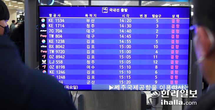 지난 겨울에도 제주에서는 두 차례 전편 결항으로 제주섬 전체가 고립되면서 추가 숙박예약과 대기항공권 확보 등으로 큰 혼란을 빚는 항공대란이 발생한 바 있다.