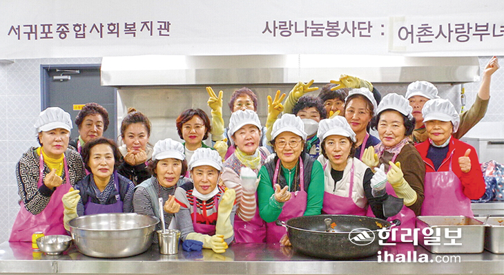 서귀포수협 어촌사랑부녀회(회장 홍영심)는 지난 22일 서귀포시 노인복지회관에서 경로식당을 열고 무료급식봉사를 진행했다.
