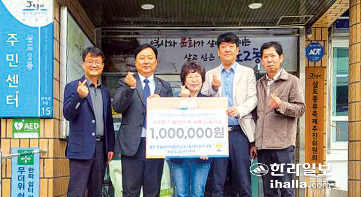 제주한올로타리클럽(회장 장용식)은 지난 22일 제주시 삼도2동새마을부녀회(회장 김지후)에서 추진하고 있는 밑반찬 나눔과 돌봄 사업에 100만원을 후원했다. 장용식 제주한올로타리클럽 회장은 "앞으로도 소외된 이웃을 보살피고 나눔을 실천하겠다"고 했다.