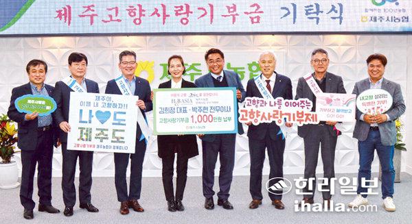 제주시농협(조합장 고봉주)은 지난 21일 본점에서 판매사업 우수거래처인 H&B ASIA 김희정 대표와 박주현 전무이사가 제주도에 고향사랑기부금 연간 기부 상한액인 각 500만원씩 총 1000만원을 기탁했다고 23일 밝혔다.