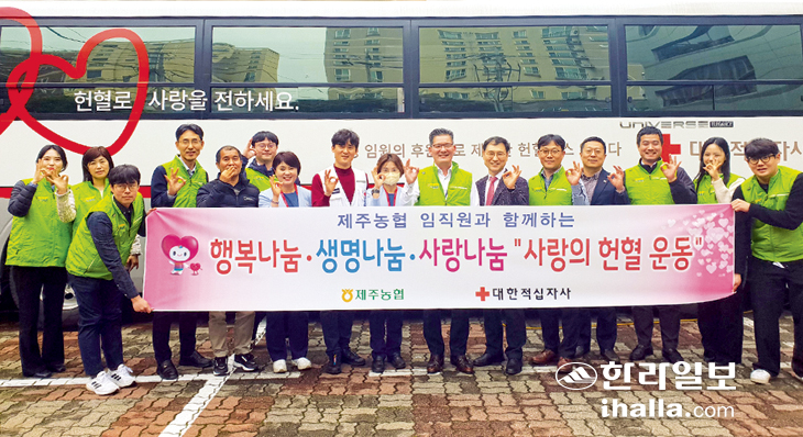 농협제주본부(본부장 윤재춘)는 지난 23일 제주지역 혈액수급난 해소를 위해 본부 주차장에서 대한적십자사 제주혈액원과 합동으로 '凡제주농협 사랑의 헌혈운동'을 실시, 임직원 30여명이 헌혈에 동참해 생명나눔과 이웃사랑을 실천했다.