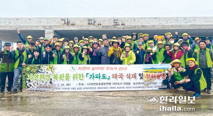 (사)자연보호중앙연맹 서귀포시협의회 대정읍지회(지회장 정연오)와 표선면지회(지회장 강희철)는 지난 25일 100여명이 참석한 가운데 '가파도 환경복원 식재작업 및 자연정화 활동'을 전개했다.