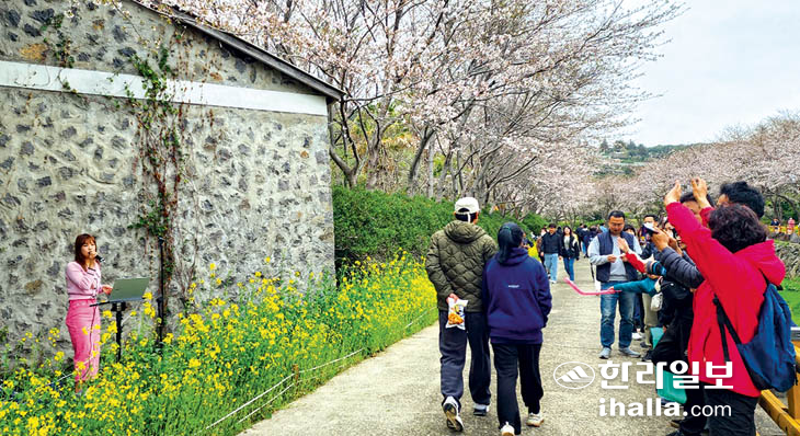 지난 25~26일 양일간 열린 이번 행사에는 주민과 관광객 1000여명이 방문했다. 벚꽃 열쇠고리 만들기 등 벚꽃을 활용한 이벤트와 함께 버스킹 공연, 캐리커쳐, 페이스페인팅, 우드버닝, 아트풍선 등 다양한 체험행사가 곁들여졌다. 아울러 뿔소라구이, 기름떡, 한라봉 모양의 쿠키 등 제주스러운 먹거리와 비즈 등 수제공예품 마켓, 감성적인 포토존 운영으로 벚꽃길의 즐거움과 볼거리를 더했다.
