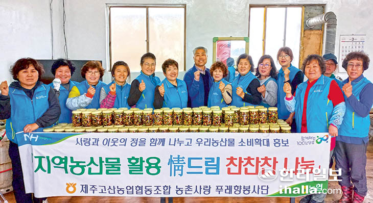 제주고산농협(조합장 고영찬) 농촌사랑푸레향봉사단(회장 고순여) 회원 20여명은 지난 24일 용수리 푸레향봉사단 회원인 고봉선 농가에서 '사랑·情드림 찬찬찬 밑반찬 나눔봉사'를 진행했다.