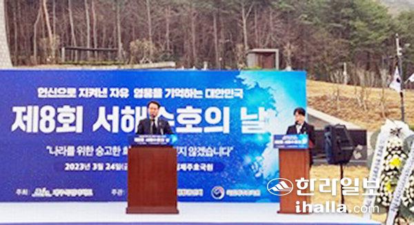 제2연평해전·천안함 피격·연평도 포격전으로 산화한 서해수호 55용사를 추모하는 '제8회 서해수호의 날 기념식'이 지난 24일 국립제주호국원 현충광장에서 제주특별자치도가 주최하고 제주특별자치도재향군인회(회장 김달수) 주관으로 엄정하게 거행됐다.