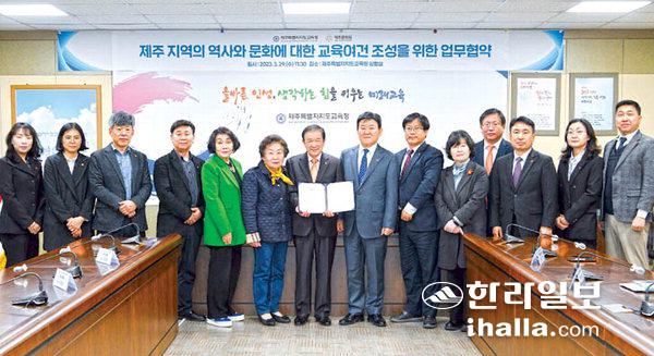 제주도교육청(교육감 김광수)과 제주문화원(원장 김양택)은 29일 도교육청 상황실에서 '제주 지역의 역사와 문화에 대한 교육여건 조성을 위한 업무 협약'을 체결했다.
