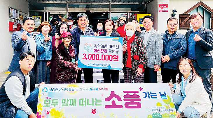 후원금은 산남새마을금고와 자생단체인 골프동호회, 산악회, 부녀회가 함께 마련한 것이다.