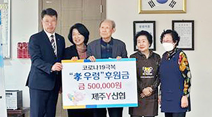제주Y신협(이사장 여혜숙)은 지역사회와 함께하는 환원 활동의 일환으로 지난달부터 최근까지 제주시내 용담1동 경로당을 비롯해 관내 6곳에 50만원씩 모두 300만원의 운영비를 지원하고 떡을 전달했다.