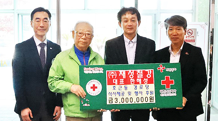 (주)재성철강(대표이사 한해성)은 지난 10일 대한적십자사제주특별자치도지사(회장 정태근)에 호근동노인회(회장 현익준) 어르신을 위해 식사 제공 및 여행경비 300만원 상당을 후원했다.