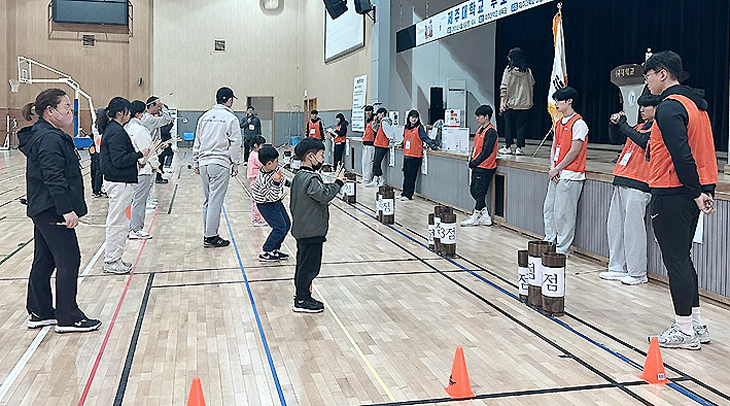 2023 제주대학교 투호놀이 챔피언십이 지난 8일 제주대학교 체육관에서 제주대 해양스포츠센터(센터장 서태범) 주최로 열렸다. 초등 저학년부, 초등 고학년부, 중등부로 나눠 진행된 이날 대회에는 부모와 자녀들로 구성된 40여 개 팀이 참가했다.