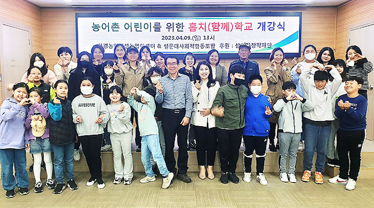 한경농협(조합장 김군진)은 지난 9일 농업인교육장에서 삼성꿈장학재단 후원으로 설문대사회적협동조합(이사장 진윤혜)과 공동 진행하고 있는 '홈치학교' 개강식을 개최했다. 학교는 앞으로 일요일마다 운영된다.