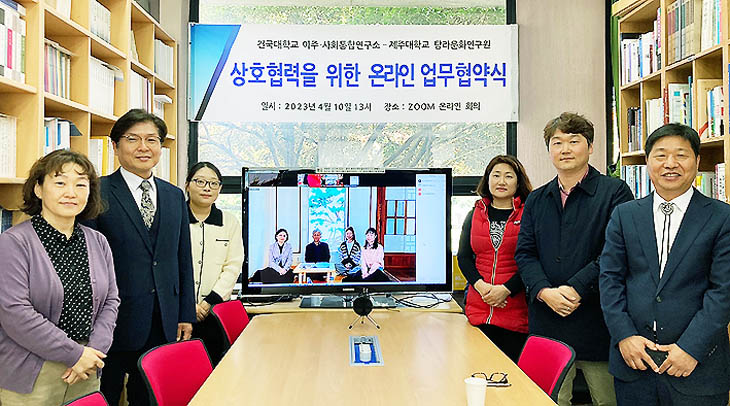 제주대학교 탐라문화연구원(원장 김치완)과 건국대학교 이주·사회통합연구소(소장 최윤철)는 지난 10일 상호협력을 위한 업무협약을 온라인으로 체결했다.