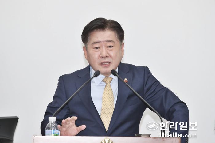 오 지사는 이와함께 제주형 행정체제 개편을 위한 제주특별법 개정 방향을 묻는 이정엽 의원의 질의에 "강원특별자치도가 시·군을 존치하는 내용으로 강원특별법 개정을 추진하고 있다"면서 "제주에 기초지자체를 설치하는데 도움을 줄 것으로 생각하고 있으며 지난 6일 중앙지방협의회에서 대통령에게 이 부분을 건의했고 올해 상반기 중 논의가 이뤄질 것으로 생각한다"고 말했다.