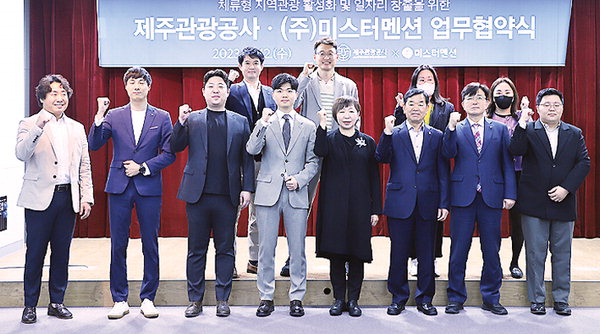 제주관광공사는 12일 제주웰컴센터에서 주식회사 미스터멘션(대표 정성준)과 체류형 지역관광 활성화를 위한 업무협약을 체결했다.