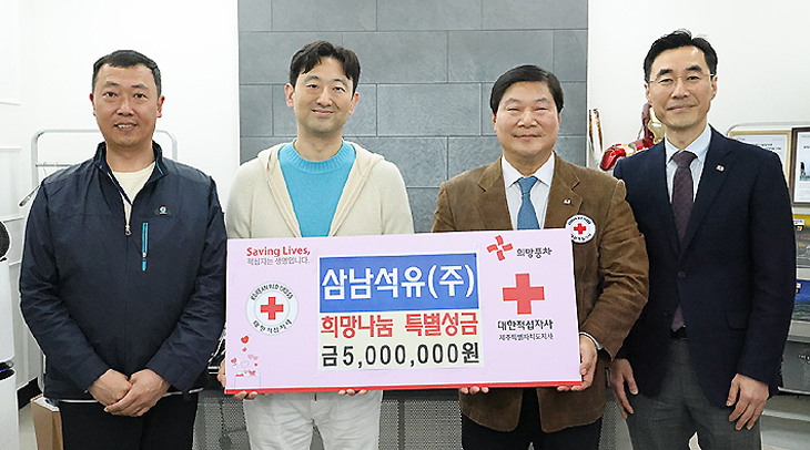 삼남석유 주식회사(회장 장규방)는 17일 삼남석유 회장실에서 대한적십자사제주특별자치도지사(회장 정태근)에 희망나눔 특별성금 500만원을 기탁했다. 이번 성금은 지역사회에서 소외된 이웃들을 돕고자 마련됐다.