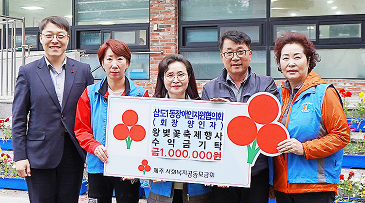 제주시 삼도1동장애인지원협의회(회장 양인자)는 지난 14일 삼도1동주민센터(동장 양철안)에서 이웃사랑 성금 100만원을 제주사회복지공동모금회(회장 강지언)에 기탁했다.
