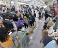 | 강풍으로 항공편이 잇따라 결항되면서 제주공항 출발대합실이 크게 붐비고 있다. 강희만 기자 |