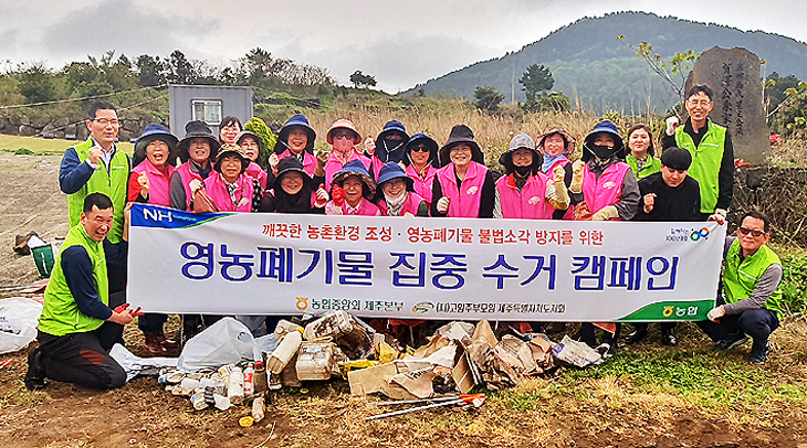 농협제주본부(본부장 윤재춘)는 19일 제주시 구좌읍 한동리 일대에서 고향주부모임(회장 김진범)과 농협 임직원 등 20여 명이 참여한 가운데 영농폐기물 수거 캠페인을 벌였다.