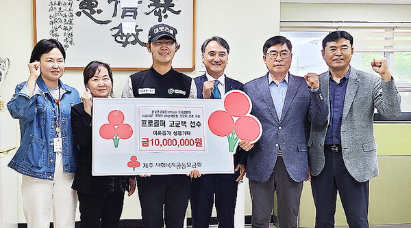 서귀포시 남원읍 출신 고군택(24·대보건설) 프로 골퍼가 지난 19일 남원읍사무소를 방문해 고향의 어려운 이웃을 위한 이웃돕기 성금 1000만원을 남원읍지역사회보장협의체(공동위원장 현은정, 김기창)에 기탁했다.
