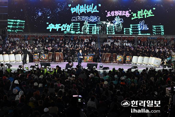 개회식 공식행사는 '약속된 미래'를 주제로 음악을 통해 사랑을 전하는 제주의 새싹(남녀어린이4중창, 농아인협회 수어음악 동호회)들의 애국가 합창, 제주 출신의 미스트롯2 가수 양지은의 고향사랑기부금 전달식, 최첨단 정보통신기술(ICT)적용 메타버스 드로잉을 통한 오영훈 지사의 격려사, 성화 점화에 이어 도립무용단 등이 참여하는 'I love jeju(제주강강수월래)' 플래시몹 퍼포먼스가 피날레를 장식했다.