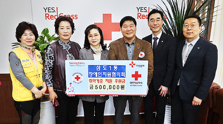 제주시 삼도1동장애인지원협의회(회장 양인자)는 지난 21일 제주적십자사 회장실에서 대한적십자사제주특별자치도지사(회장 정태근)에 취약계층 지원 후원금 50만원을 전달했다.