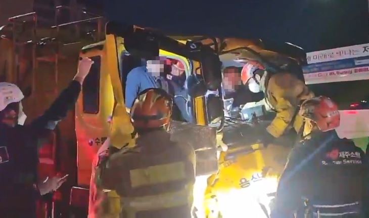25일 제주소방서와 경찰 등에 따르면 이날 오전 5시11분쯤 제주시 일도2동 문예회관 인근 도로에서 음식물쓰레기 수거 차량이 앞서가던 다른 음식물쓰레기 수거 차량 등을 추돌했다.