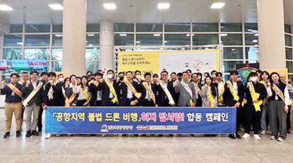 제주지방항공청은 지난 25일 제주공항 국내선 터미널 도착장에서 한국공항공사 제주공항, 제주경찰청, 공항보안실과 합동으로 불법 드론의 위험성을 알리고 안전하고 합법적인 비행 안내를 위한 '불법드론방지 안내캠페인'을 실시했다.