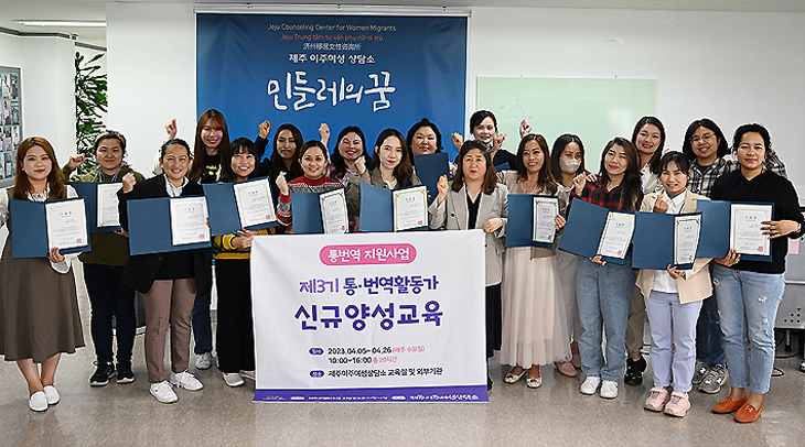 제주이주여성상담소는 27일 상담소 교육실에서 '제3기 통·번역 활동가 신규양성교육' 수료식을 개최했다.