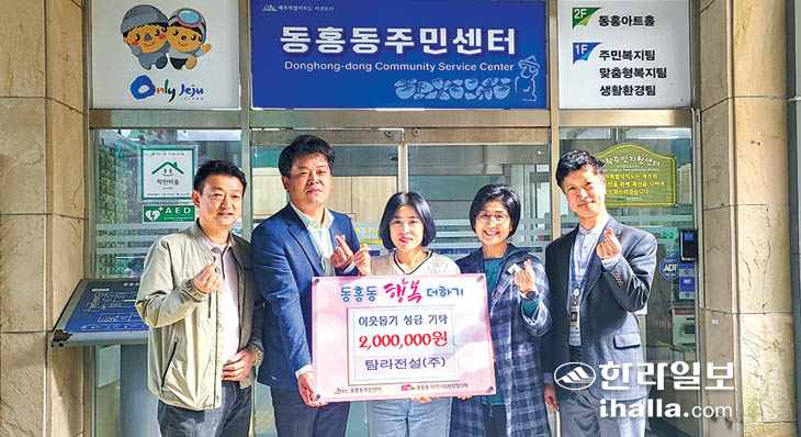 탐라전설(주)(대표 고권희)는 지난달 27일 동홍동주민센터(동장 허연일)를 방문해 복지 사각지대에 놓인 지역 내 도움이 필요한 이웃을 위해 써달라며 이웃돕기 성금 200만원을 기탁했다.
