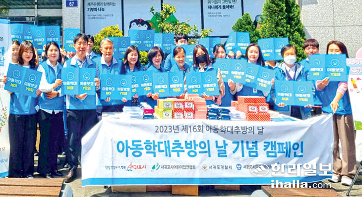 서귀포시는 지난달 27일 아동학대 추방의 날을 맞아 중정로 일대에서 아동학대 예방 캠페인을 전개했다.