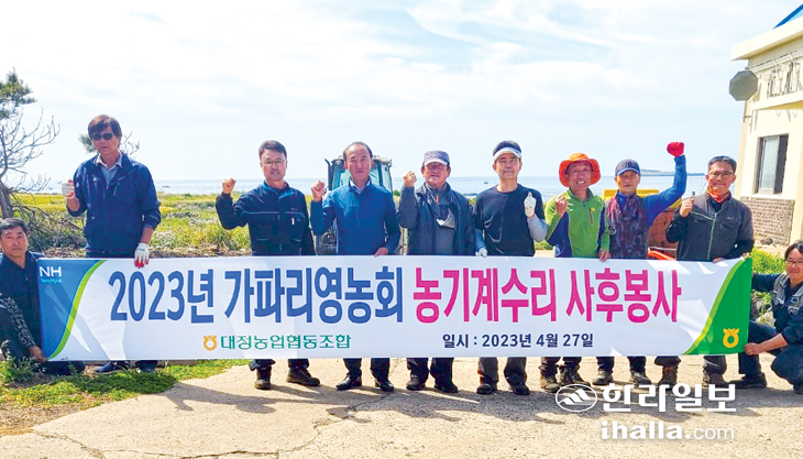대정농협(조합장 강성방)은 지난달 27일 가파도 영농회를 방문해 농기계 수리봉사를 실시했다. 이번 수리봉사는 대정농협 직원과 대동농기계, LS농기계가 협력해 농기계 수리와 농가에 경유와 등유 6000여ℓ를 공급했다.