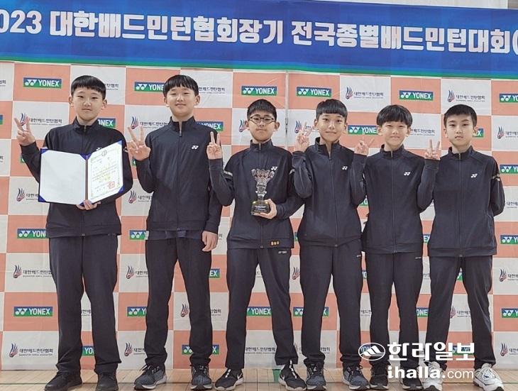 2023 대한배드민턴협회장기 전국종별배드민턴대회(초등)에서 3위를 차지한 동광초. 왼쪽부터 박동하, 최정, 홍승운, 박준서, 김강민, 부현규.